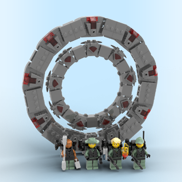 Das BlueBrixx Stargate anhand des Preview-Videos nachgebaut – das kommt im Vergleich zu «meinem» Tor und den Minifiguren schon ein wenig winzig – hat aber auch nur 150 Teile, statt 250